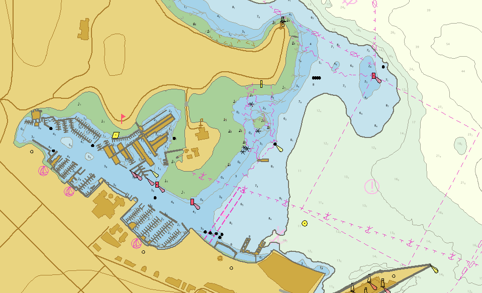 ENCs are "smart charts", which means the user can click on different features, such as a light or buoy, to retrieve additional information not available in paper or raster charts. For example, a wharf appears only as an image on an RNC, but an ENC can identify it as a wharf and attach attributes to it such as height, length, age, ownership, number of berths, etc. This additional data, which is contained directly within the ENC, might otherwise only be available by consulting the relevant Sailing Directions publication.